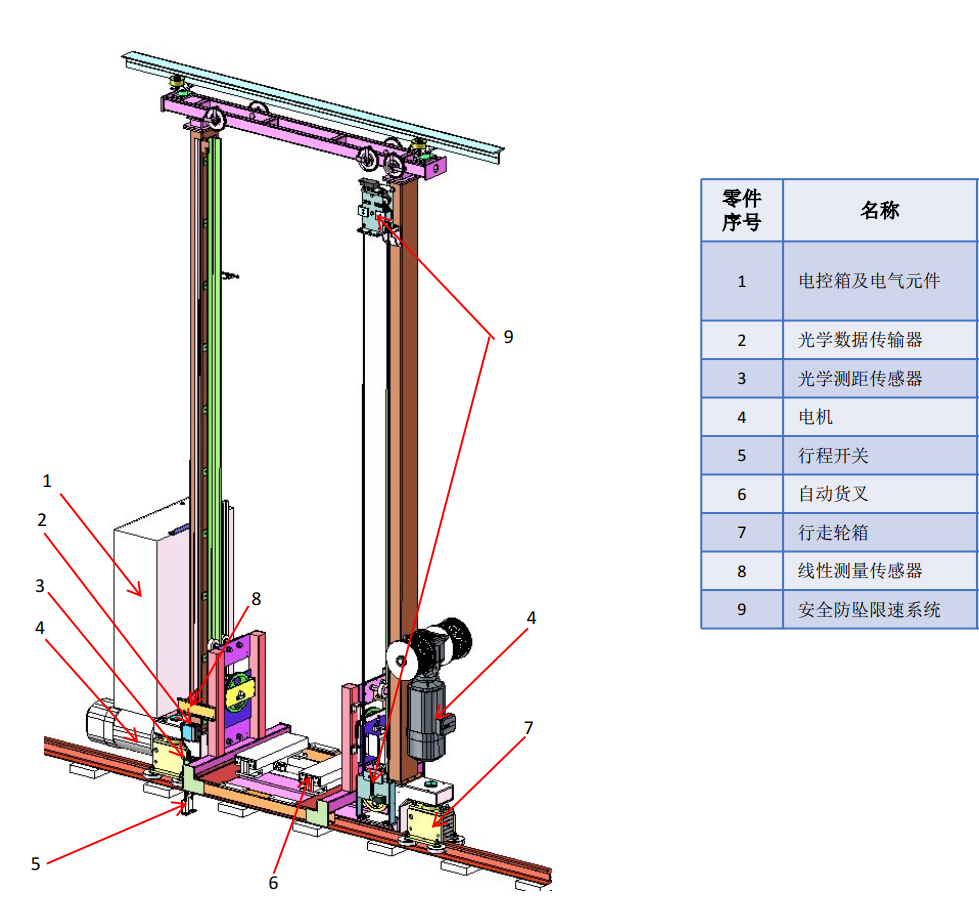 在设计上述安全机构的同时,我司根据本项目的应用场景,最大限度的保障堆垛机安全稳定可靠运行,还设计了具备货叉动作联锁保护及“双重入库”和“空取货”探测及报警功能,载货台设计有货物托盘超差检测机构;载货台设计有货架货位虚实探测器,判断货位有无货状态。