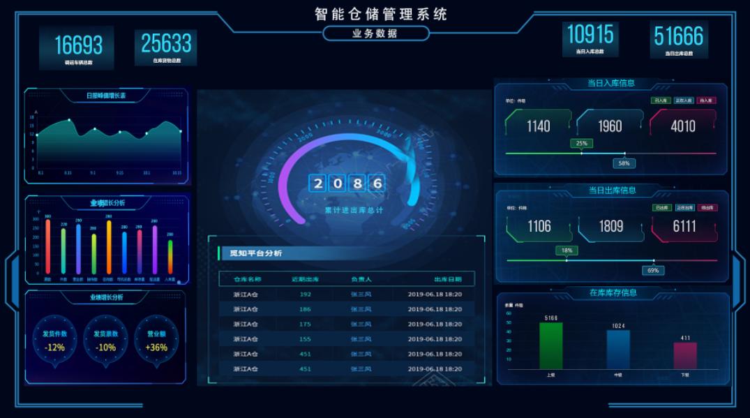 数据可视化板块主要是实现通过展示大屏来显示整个立体仓库系统的相关信息及运作情况。